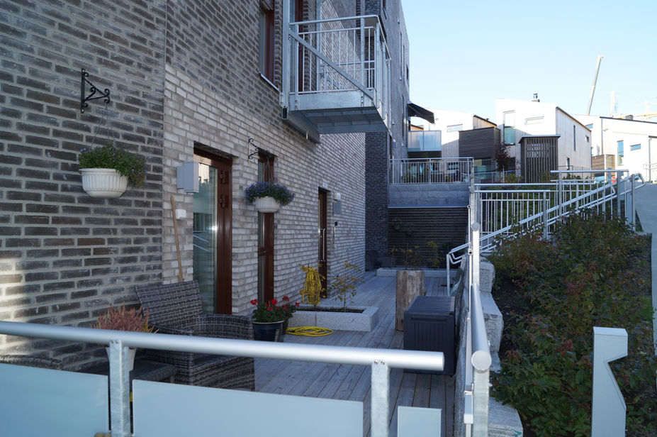 Bygget består av 1 boligblokk med 22 leiligheter fordelt på 4 etasjer. Totalt BTA er på ca. 2.500 m2 hvorav ca. 1.800 m2 er leiligheter. Alle leilighetene har meget gode planløsninger med luftige rom og store vindusflater. I tillegg har alle egen uteplass i form av enten balkong eller markterrasse. Noen leiligheter har til og med to uteplasser. Felles for boligblokken er at de har garasjeplass og sportbod i kjeller med heis opp til leiligheten. Tar du heisen helt opp på toppen, kommer du til en felles takterrasse på 160 kvm. med en vakker utsikt og ypperlig solforhold.